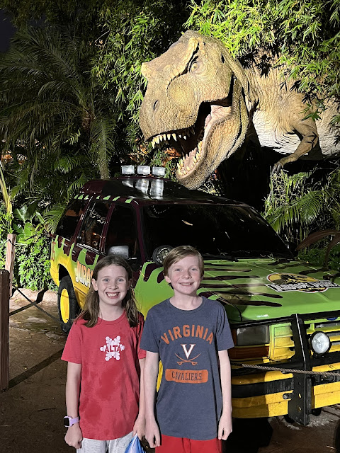 And we stopped to get a picture in front of the Jurassic Park gates. We'd tried to get one the first day, and some guy saw Craig's BYU shirt and insisted on taking it for us (he grabbed Craig's phone out of his hands just forcefully enough that I was honestly poised to chase after him if he made a run for it with Craig's phone (is that even a thing any more?)), and then